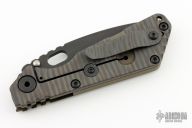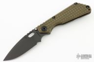 This MSC SNG framelock folder by Mick Strider features a black blade and a MEFP green G-10 and flamed titanium frame and tip up titanium clip. Includes Hinderer "Lock Bar Stabilizer" for maximum reverse lock retention. Nice detent, lockup and blade seating. New condition.