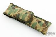 This 11" Swivel Bolster by INOX features a polished flat ground blade. The handle has stainless steel bolsters, front and rear, horn scales, brass liners, stainless spring. Has some light scratches, otherwise good condition. Comes with a camo nylon belt sheath.