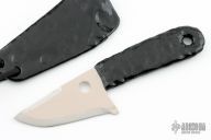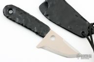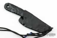 This Defcon 3 by Blade Rigger features a tan coated scandi ground blade with false top edge, .101" blade stock and 1.636" blade depth. The handle is comprised of a rubber coated grip over hidden tang construction. Lanyard hole with lanyard in pommel. Includes a rigger coated kydex neck sheath. Excellent condition.