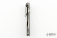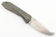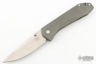 This Ti Monolock by Benchmade features a tumbled drop point blade with single thumbstud. The handle is bead blasted titanium with tip down clip and stainless steel barrel spacers. Nice detent and lockup. Has ball bearings. Blade favors the right side. Has some scuffs and scratches, good user condition.