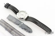 Magna Optical Watch Vintage Time Piece with pop up 3x magnifying lens, high intensity LED flashlight between the front lugs, 40mm stainless steel case, screw down case back, 100ft water resistance, white dial, luminous hour and minute hands, red second hand, luminous hour markers, ibeam tech quartz movement, 20mm black leather strap with white contrasting stitching, secondary NATO wristband, original crocodile pattern leather strap, presentation box.  Excellent Condition.