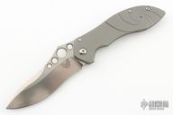 This Blackwood design Mini-Skirmish by Benchmade features a bead blasted titanium frame with a tumble finished spear point blade, thumbhole. Pocket clip is tip down stainless steel. Comes in an H&K box, papers, and BM drawstring pouch. Has a couple light scuffs, excellent condition otherwise.