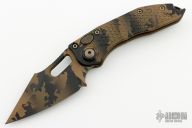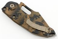 This Stitch Auto by Microtech Knives features an Coyote camo coated blade and false top edge, notched thumb and finger rests. The handle has an Coyote camo coated anodized and milled aluminum handle with a titanium backspacer, stainless steel hardware and clip, tip up carry, lanyard hole at the butt. Comes with original box and papers. S/N of 170 and dated 03/2023. Excellent condition.