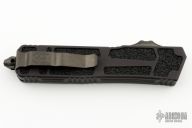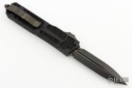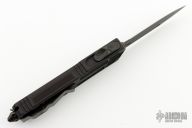 The Microtech Scarab II is a high quality tactical out-the-front knife, based on the original Microtech Ultratech design. Built to withstand the extreme, the Scarab II excels in high-intensity covert operations. The Scarab II is designed for a broad spectrum of utility and close quarter combat applications for use by qualified law enforcement, military, and government agency operatives. The Scarab II is fabricated to the highest possible standards to assure reliability and safety with its use. Featuring a one-handed, open and close, dual-action out-the-front (OTF) design, and double edge blade. The Scarab is produced with a large easy-to-grip handle that contains non-slip grip inlays on both sides. Comes with original box and papers. Excellent condition.