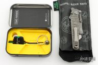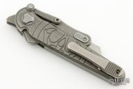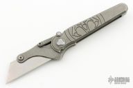 G&G Hawk Shortcut utility knife. Stonewashed Titanium Frame and flipper. Snappy flipping action. Solid lockup, blade seating and centering. Comes with Hawk pouch and tools to replace the blades, and a metal container to keep them in. Has a couple light scuffs, excellent condition otherwise.