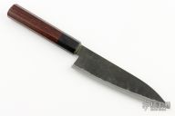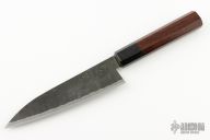 The Petit knife is traditionally used as a paring knife or all-purpose small kitchen knife. The blade is Stainless Clad Aogami Super Steel (NAS) which is a high-carbon steel alloy with vanadium. As with all of Takeda's knives, it has a strong sharp edge. The octagon shaped wood handle is easy to hold. 142mm cutting edge, hidden tang construction. Comes with original box and papers. New from maker.