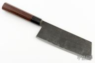 The Bunka is traditionally used for cutting vegetables, fish or meat. The blade is Stainless Clad Aogami Super Steel (NAS). As with all of Takeda's knives, it has a strong sharp edge. The octagon shaped wood handle is easy to hold. 170mm cutting edge, .094" blade stock and 2.310" blade depth. Brand new from maker.