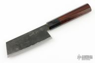 The KoBunka by Takeda is traditionally used as a paring knife or all-purpose small kitchen knife. The blade is Stainless Clad Aogami Super Steel (NAS). As with all of Takeda's knives, it has a strong sharp edge. The octagon shaped wood handle is easy to hold. 110mm cutting edge. Comes with original box. Brand new from maker.