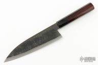 The is a long narrow kitchen knife with a thick blade made from Stainless Clad Aogami Super Steel (NAS) which is a high-carbon steel alloy with vanadium and is ground on both sides. As with all of Takeda's knives, it has a strong sharp edge. The octagon shaped wood handle is easy to hold. 160mm cutting edge, .150" blade stock and 1.705" blade depth. Brand new from maker.