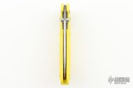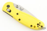 This axis-lock was designed by Mel Pardue and made by Benchmade stonewashed drop point blade a notched thumbrest and dual thumb studs. The handle is composed of yellow FRN and a black steel tip up pocket clip. Has some light scuffs and scratches, excellent condition otherwise.