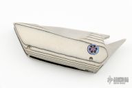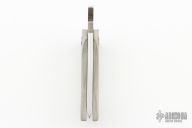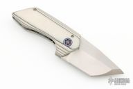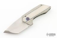 This Micro Apex by Victor Barajas features a hollow ground stain finish tanto blade. The blade doubles as a bottle opener in the closed position. The handle has a Carbo Quartz frame with a Mokuti pivot. Excellent condition.