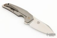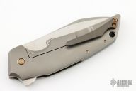 This HiFi by Philippe Jourget is a Tashi Bharucha design. It features a hand rub satin finished blade with flipper. The handle has a bead blasted titanium frame with blackened titanium backspacer and tip up clip. Anodized titanium hardware. Comes with original zippered case and COA dated 12-2016. Excellent condition.