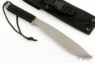 This PAB by Strider features a bead blasted blade with notched thumbrest and false top edge, .255" blade stock and 1.851" blade depth, full tang construction with paracord wrap. Comes with black nylon sheath with kydex insert. Has some sheath suffs, otherwise excellent condition.