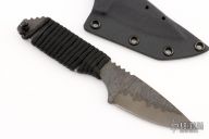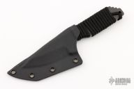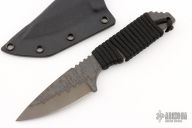 This SA by Strider Knives features a bead blasted and flamed drop point titanium blade with notched thumbrest, .213" blade stock and 1.302" blade depth, full tang construction with black paracord wrap. Includes kydex sheath. Has some scratches from the sheath, otherwise excellent condition.