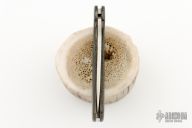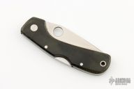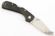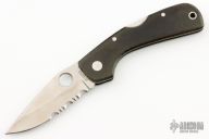 This lockback folding knife designed by Wayne Goddard features a partially serrated satin finished blade. Black linen micarta handle. Has a couple of light scratches, otherwise excellent condition.