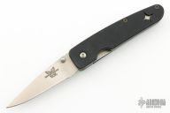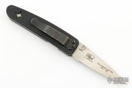 Mel Pardue designed Benchmade 856 with a satin finish spear point blade. Black bead blasted aluminum handle. Blade says "Pre-Production Run #263/500". Black stainless steel clip, tip down carry. Has some light scuffs and scratches great condition otherwise.