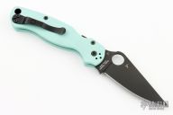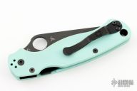 In this special edition of the Paramilitary 2, it comes with teal G10 handles instead of the normal FRN scales. G10 has great weather-resistant properties which give the handle a sure grip in any environment. The blade of the knife is DLC coated and the steel is upgraded from the normal S30V stainless steel to S90V.