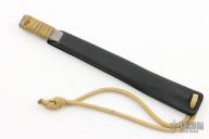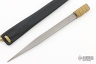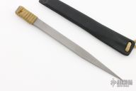 In 1988, he began making specialized knives for use by the military. This turned out to be fortunate turn of events, both for Mick and for the knife using world at large. Mick’s approach was to not get burdened by the weight of past designs. He started with a tabula rasa, a clean slate, informed only by his own experiences and knowledge of what a soldier needed in a knife. The knives he made didn’t look like the hunter-inspired knives seen in most PXs; instead they were almost brutish in their functionality: beefy, solid, and with unbreakable ¼” stock full tangs. These knives were the first indication of his innovative approach: in addition to their utilitarian design, the knives carried a subdued finish and subdued sheaths. No one carrying a Strider knife was going to be spotted because of sunlight glinting off of polished steel or a glossy leather sheath. Soldiers, policemen, and other men going into harm’s way couldn’t buy them fast enough. Mick sampled some good ideas, but made them great. For instance, he was not the first to wrap a knife handle with paracord, but he was the first to do it in a way that was tough enough for sustained infantry use. His knife line grew over the following years to include different varieties of fixed blades, all distinctive and many with specialized uses. But constant in all of them was a disregard for convention, and a desire to try new ideas. An example of this was the Ajax – it featured a very wide blade surface clearly designed to inflict damage. It drew on the weapons carried by Roman legionnaires, yet was modern and usable in the 21stCentury battlefield. Mick also worked on his technical skills, always striving to become better at the physical craft. At the 2002 Blade Show, a group of the best tactical knifemakers in the country decided to compete with each other to produce the most innovative and interesting fixed “battle blade” at the show. Mick’s entry, an incredible integral knife made out of ½” titanium stock with a zippered composite blade, gorgeous handles, and integral guard was the unanimous winner, and effectively retired the competition.