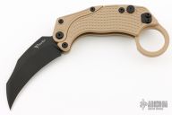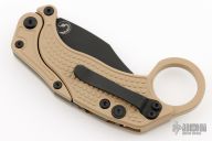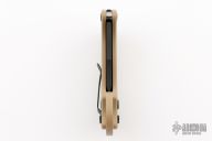- Ceramic-coated tan aluminum handle scales with frag-texture milling and a titanium backspacer.