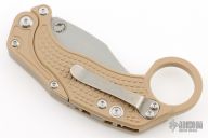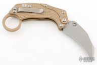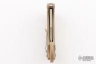 - Ceramic-coated tan aluminum handle scales with frag-texture milling and a titanium backspacer.