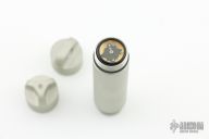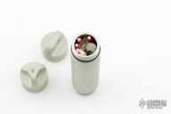 Aluminum Survival capsule. Has o-rings on caps to make it water proof. Comes with compass, matches, small candle, fishing line, a hook and a split shot weight. Excellent condition. Comes with original packaging.