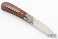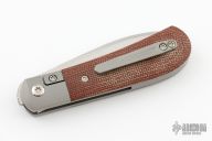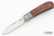 This Zulu Front Flipper by Enrique Pena features a satin finished blade with a front flipper and notched thumbrest. The handle has titanium bolsters, brown micarta sclaes with a titanium backspacer and matching tip up pocket clip. Includes a Pena X-Series padded box. Has a couple light scuffs, excellent condition otherwise.