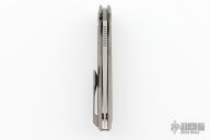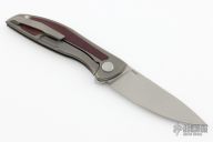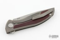 This Neon NL by Shirogorov features tumbled blade with notched thumbrest and flipper. The handle has a tumbled titanium frame with maroon micarta inlays. Comes with box and papers. Rides on MRBS. Excellent condition.