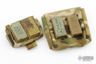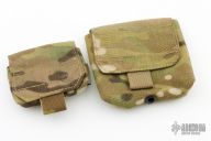 These vintage pouches by TAD Gear. The larger pouch is approximately 4.5"x4". Has an interior pocket, drain hole, and velcro attachment loops. The other pouch is approximately 2.75"x3". This pouch has molle velcro attachment straps. Excellent condition.