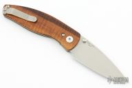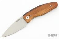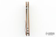 This Neutron Linerlock by Three Rivers features a stonewash finished blade with dual thumbstuds. The handle has wood scales, titanium liners with a titanium tip up reversible clip. Nice detent, lockup and blade seating. Comes with original box, and papers. Comes with extra scales: red g10, carbon fiber, and green micarta. Excellent condition.
