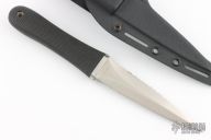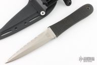 "Originally designed as back-up for law enforcement and military personnel, the Pentagon series is now popular with outdoor knife enthusiasts as well. The Pentagon offers the instant choice between a serrated or beveled edge for cutting options. Twin thumb notches enable accurate blade orientation and downward control. The aggressively checkered, flared handles provide confident gripping as well as sensational feel and balance." Comes with a kydex sheath. Has a couple very light scratches, otherwise excellent condition.