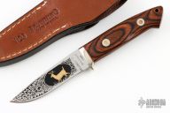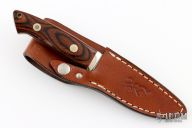 This is a limited edition Browning knife features a nickel silver guard, wood scales with red liners. Has a mirror polished blade with .143" blade stock and .880" blade depth, full tapered tang construction. The knife comes with a brown leather sheath. Excelelnt condition.