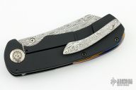 This Framelock Flipper by Turner Knife & Tool features a Damasteel sheepsfoot style blade with a mokuti thumbstud.  The handle has a black titanium bolster and frame with a single Damasteel scale. Tip up Damasteel pocket clip and a Mokuti backspacer.  The blade is a little off center otherwise the knife is in Excellent Condition.