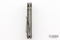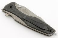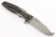 This rendition of the 0393 folding knife is outfitted with a working finished handle and blade, and impressive glow in the dark carbon fiber overlays. ZT's 0393 pairs an aggressive Rick Hinderer design with a solid Zero Tolerance build to create a substantial EDC folding knife. The 0393 sports a Hinderer Maximus inspired handle with a titanium frame and stunning glow carbon fiber overlays. When not charged the glow carbon fiber looks just like regular carbon fiber. Its harpoon style blade is made from CPM-20CV steel in a working finish. This knife is compatible with a selection of Hinderer custom hardware to make your knife stand out from the crowd. Features: KVT ball-bearing pivot for smooth and easy one-handed opening. Reversible pocket clip for secure left or right tip-up carry. 20CV Spanto blade provides excellent edge retention, superior hardness, and piercing power. Has a nick on the front scales, otherwise excellent condition. Comes with original box and papers.