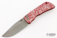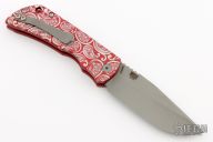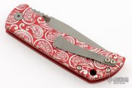 This MAC2 features a stonewashed clip point Magnacut blade with a notched thumbrest. The handle features a "Paisley" aluminum frame with a stonewashed tip up pocket clip. Comes with original box and COA. Excellent condition.