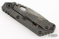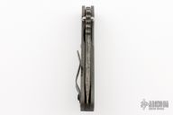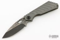 This SNG framelock folder by Mick Strider features a drop point blade and a gray aluminum and flamed titanium frame and tip up titanium clip. Includes Hinderer "Lock Bar Stabilizer" for maximum reverse lock retention. Nice detent, lockup and blade seating. Has some light scuffs, excellent condition otherwise.