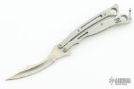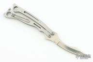 The Szabofly by Spyderco is no longer in production, if features a satin finish blade with swedge. The handle has bead blasted stainless steel handles with a spring loaded latch and a tip up reversible clip. Comes with original box. Excellent Condition.