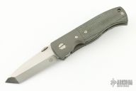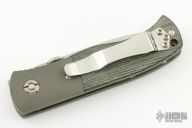 This Mini CQC-7 PoBoy by Nath has a chisel ground tanto blade with thumbdisc, zero ground blade, no secondary bevel, looks really good! The handle has dovetailed bead blasted titanium bolsters, black canvas micarta scales, bead blasted titanium liners, tip up stainless steel clip. Excellent condition.  Comes with original box. Excellent condition.