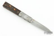 "I started making knives in 1957 and also worked with several engineering companies and continued making knives part time during this period. In 1974, I had the opportunity to join the Knifemakers guild and serve as an apprentice for two years. In the third year, I was voted in as a voting member of the Knifemakers guild, and after a few years I was elected as a director of the guild. After serving this position for several years, I was elected as the vice president of the Knifemakers guild, and served in these positions for a total of 35 years. I also have worked with Benchmade Knife Company for 24 years as a knife designer. Benchmade has manufactured many of my designs and currently continues to do so. Over the last 22 years, I have had the opportunity to teach knife making classes at the American Bladesmith School in Arkansas, and also at the Tannerhill symposium in Alabama. I have also taught many knifemakers in my shop. In 2019, I was inducted into the Knifemakers Hall of Fame at the blade show in Atlanta, Georgia." Mel Passed away in 2022.