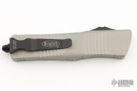 This Troodon automatic by Microtech knives features a black tanto blade with fuller. The handle has a gray titanium frame with thumb-slide and glass breaker, and tip down clip. Comes with original box and papers. Dated 07/2021 with a S/N of 7903. Excellent condition.