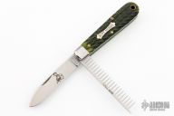 The Tidioute model 15 Barlow is a classic, traditional profile, single blade slip joint folder that has a timeless appeal. The Barlow pattern originated in Sheffield England, but it is American as “apple pie” thanks to the popularity in postcolonial America. A modified version of the classic design, the Urban Jack Knife retains the spear blade and teardrop handle with short bolsters for a more modern look paired with the BRR Tool (comb), popular for urban and rural carry. This version comes with a satin finished blade and OD Green canvas Micarta covers.