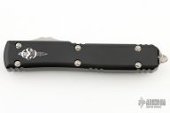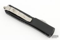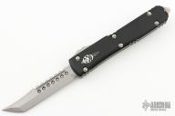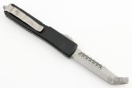 This Ultratech by Microtech Knives features a stonewashed Hellhound blade with satin flats and false top edge. The handle has a black aluminum frame with tip down blasted stainless steel clip and hardware. Comes with original box and papers. 04/2022, S/N 033. Excellent condition.