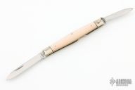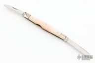 This slipjoint by Case Knives features mirror polished blades with nail nicks. The handle has nickel silver bolsters with nickel silver liners, imitation pearl covers, and a stainless steel spring. Excellent Condition.