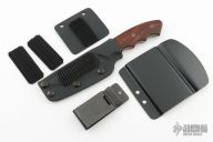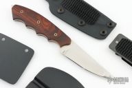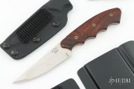 The PK-21 is the follow-up knife for the popular Pesh-Kabz from Bud Nealy. Same blade style in a hand rub satin finish with finger grooves and cocobolo wood scales with mosaic pins over full tang construction with a thickness of .107" and depth of 1.088". Notching for thumb and index finger. Includes kydex sheath with MSC II sheath system. Excellent condition. Comes with original papers and a letter from the Nealy shop.