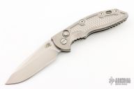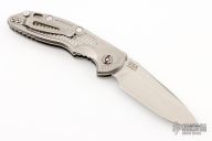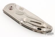 This XM-18 Flipper by Rick Hinderer Knives features a 3.5" stonewashed finish blade, notched thumbrest and flipper.  The handle has a stonewashed titanium frame with a matching tip up pocket clip.  Comes with original box and papers. Excellent condition.