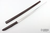 This Angel Sword "Bright Knight" features a satin finished blade, .182" blade stock and 1.230" blade depth, hidden tang construction. The handle has a wenge wood grip. Comes with a matching wenge wood scabbard. Has some very light scratches, but overall excellent condition. S7 blade steel