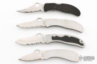4 Used vintage Spydercos. Have scuffs and scratches, have been used.