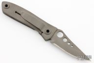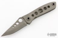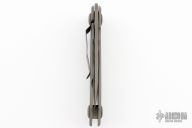 This Framelock by Warren Thomas features a chisel ground titanium blade with carbide edge and thumbhole. The handle has a bead blasted titanium frame with matching tip down clip. Has a couple scuffs, excellent condition otherwise.