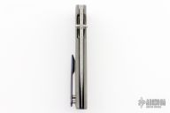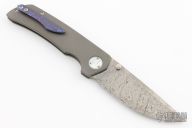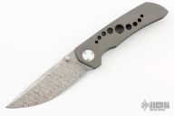 This one of a kind Mini Chaos by WR Bladeworks features a Odenheim pattern Damasteel blade with false top edge and dual thumbstuds. The handle has a bead blasted titanium frame with hole pattern, custom titanium pivot with mother of pearl inlays, MokuTi backspacer and tip up clip. Rides on ceramic bearings, nice detent, lockup and blade seating. Comes with pouch and COA dated 10-23-23. New from maker!
