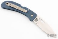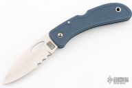 "The Boye Pointed Tip has a curved and pointed utility blade shape. It is as light and flat and useful as we can make it. It's easy to carry and deploy with either hand. This is a basic, all-around knife design that will come through time after time for all sorts of jobs, including the kitchen. But all of this versatility makes this blade a little too dangerous to use in freeing moving lines and people in rough water, in which case the Sheepsfoot blade is recommended. If means permit, consider carrying both - the Sheepsfoot as your primary safety knife, and the Pointed Tip as your workaday companion knife." Has some light scratches, otherwise excellent condition.
