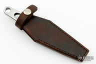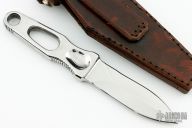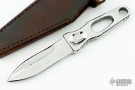 This Sting is a CRKT produced A.G. Russell Sting, modified by Ghostown featuring an integral mirror polished double-edged blade and satin handle .155" blade stock and .90" blade depth with full integral construction. Great look and feel. Comes with custom coffin shaped leather sheath and COA. Has a few very light scratches, otherwise excellent condition.